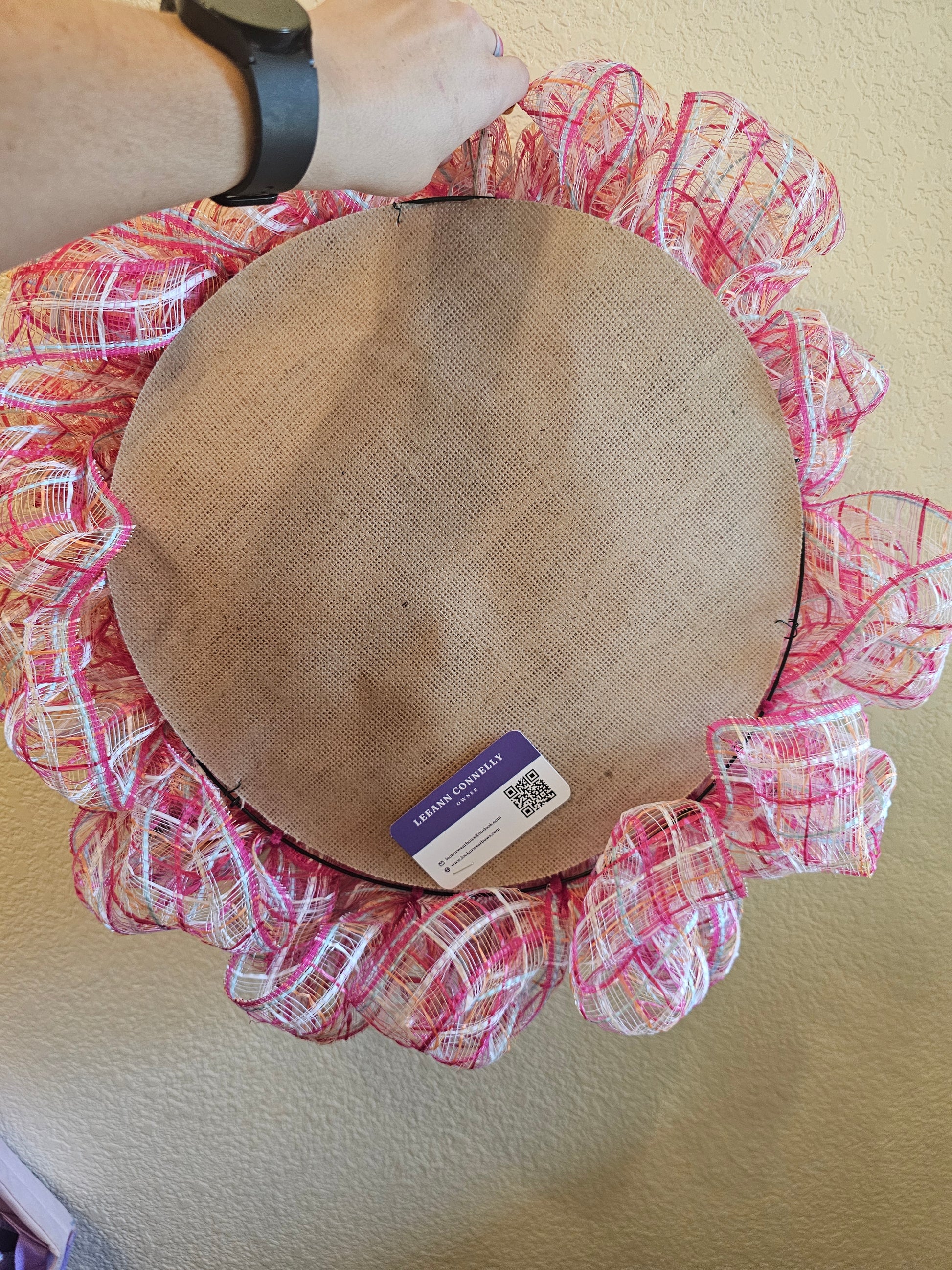 A fun, bright wreath with a sign "This is my happy place, don't ruin it." This handmade 14" wreath is vibrant and good for any day.